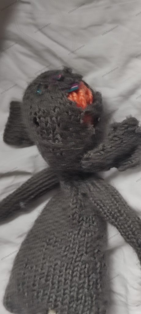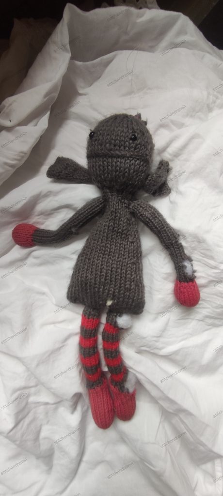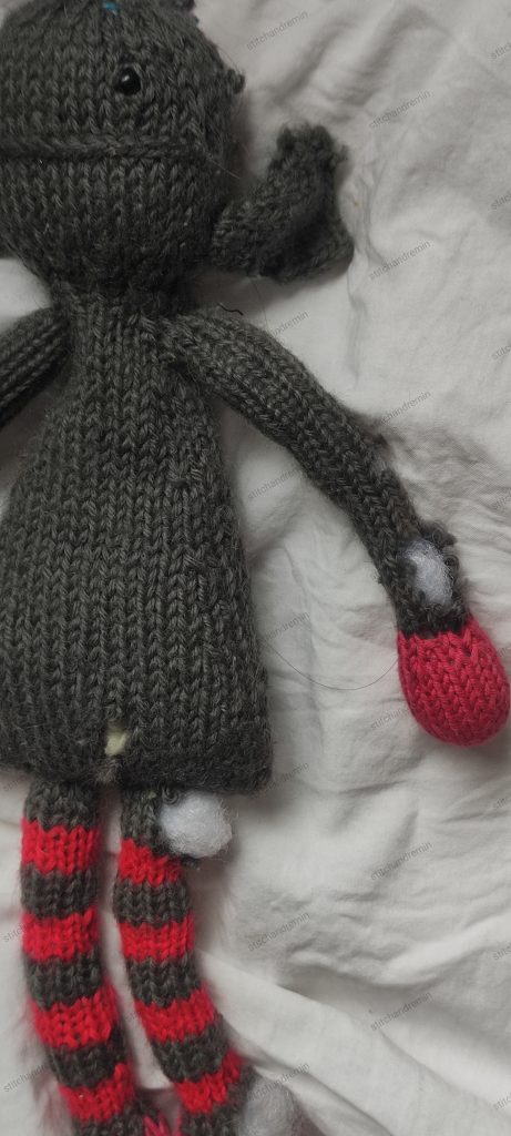 It started with a small sound—a soft snap—as I was unpacking my Christmas decorations. There it was: Tall Christmas Monster by Rebecca Danger I made two years ago, the one that used to sit cheerfully by the window, missing a stitch and looking a little too floppy.